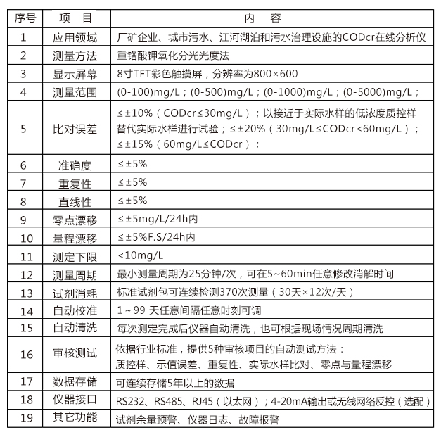 化學(xué)需氧量(Chemical Oxygen Demand,簡(jiǎn)稱(chēng)COD)是指在強(qiáng)酸并加熱條件下,用重鉻酸鉀氧化處理水樣時(shí)所消耗氧化劑的量,以氧的mg/L表示。它是綜合評(píng)價(jià)水體污染程度的重要指標(biāo),是水質(zhì)監(jiān)測(cè)的重要水質(zhì)參數(shù),是我國(guó)實(shí)施總量排放控制的重要指標(biāo)之一,同時(shí)也是河流和工業(yè)廢水的研究及污水處理廠的處理效果的一個(gè)重要而相對(duì)易得的參數(shù)。