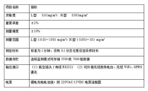 6) 檢測(cè)范圍:(0.01~100) mg/m3;(0.001~10)mg/m3;