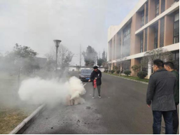 本次演習分為兩部分,疏散逃生及實地操演兩部分。演習正式開始,當倉庫發生火情散發出的大量濃煙(煙霧彈模擬)時,大家聽從王教官的指令安全有序的沿著綠色通道疏散逃生。之后,王教官模擬現場火災,指導大家如何正確有效的利用消防器材進行火災撲救。